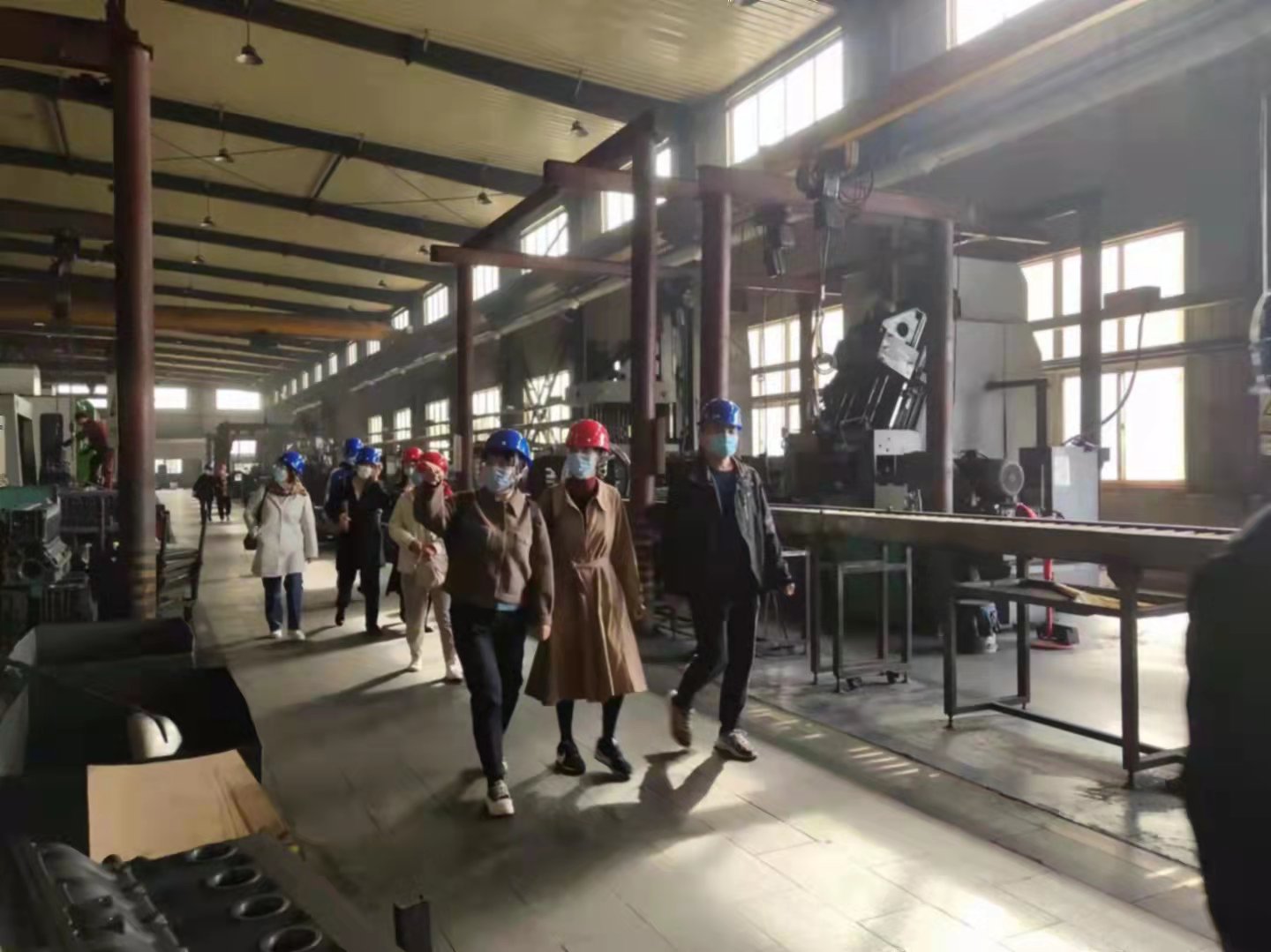 在潍坊云强零部件有限公司孙经理的带领下,全体成员对其公司的车间进行了参观学习。在参观之前,孙经理为我们讲解了进入车间的安全注意事项,各位老师了解了安全规定、穿戴好安全帽之后进入了车间;在参观过程中,孙经理对汽车零部件的生产过程进行了详细的介绍,使老师们对于零部件制作工艺有了新的认识和体会。